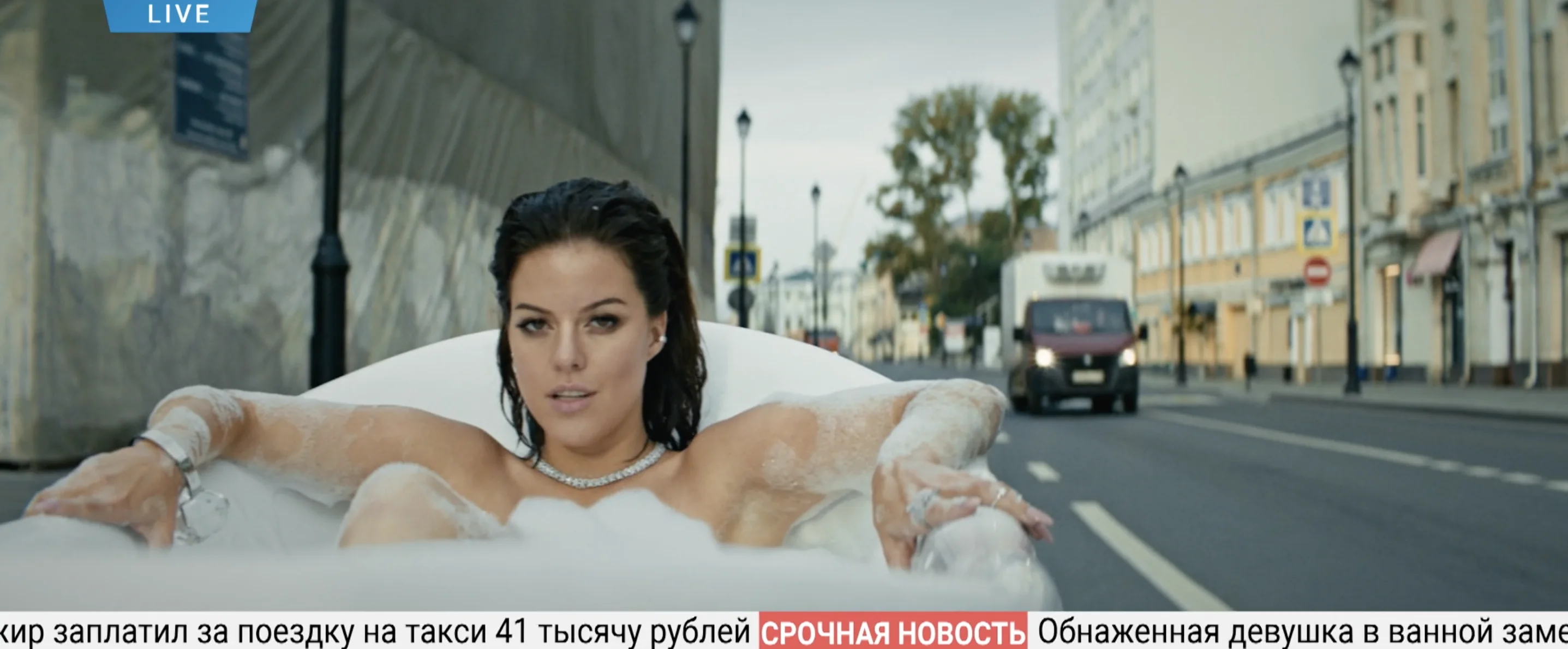 Креатив и производство провокационного клипа, в котором певица Наталья Винокурова катается в полной ванной по улицам Москвы в неглиже.